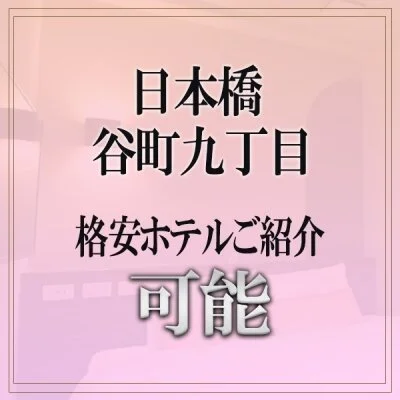 - 【日本橋】【谷町九丁目】 格安ホテルご紹介可能です。 もちろん紹介ホテル以外への派遣可能です。 同エリア内でしたら交通費0となりますので、 お気軽にお問い合わせくださいませ。